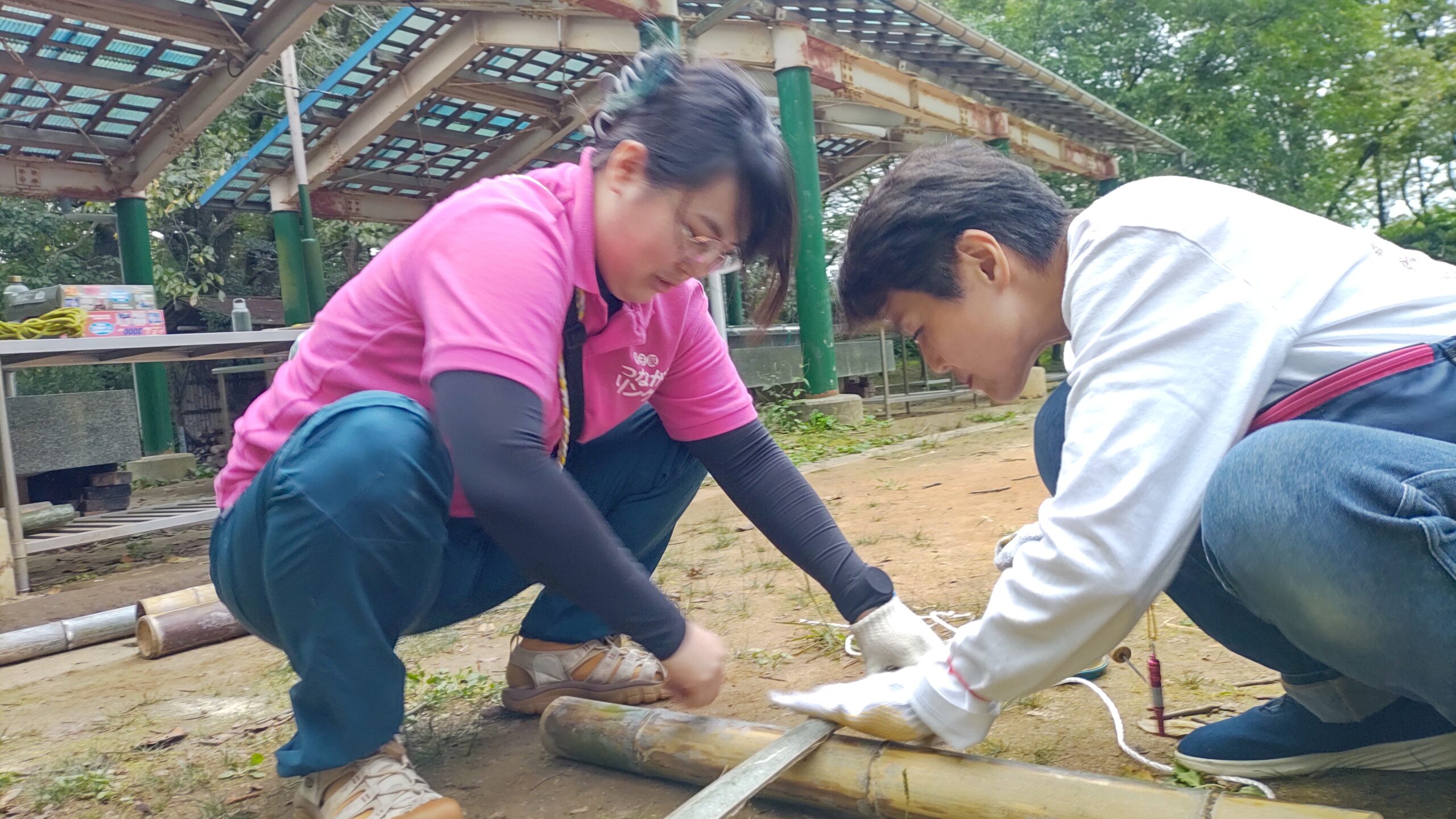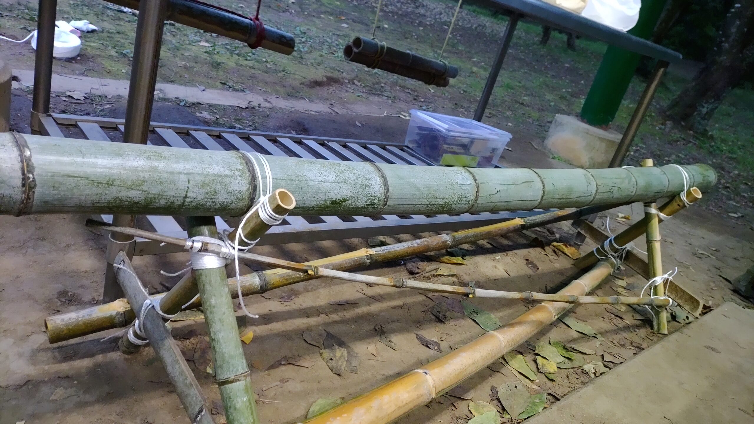 竹という自然素材を用いて、チームで生活家具を作成し、一晩それを使って過ごします。