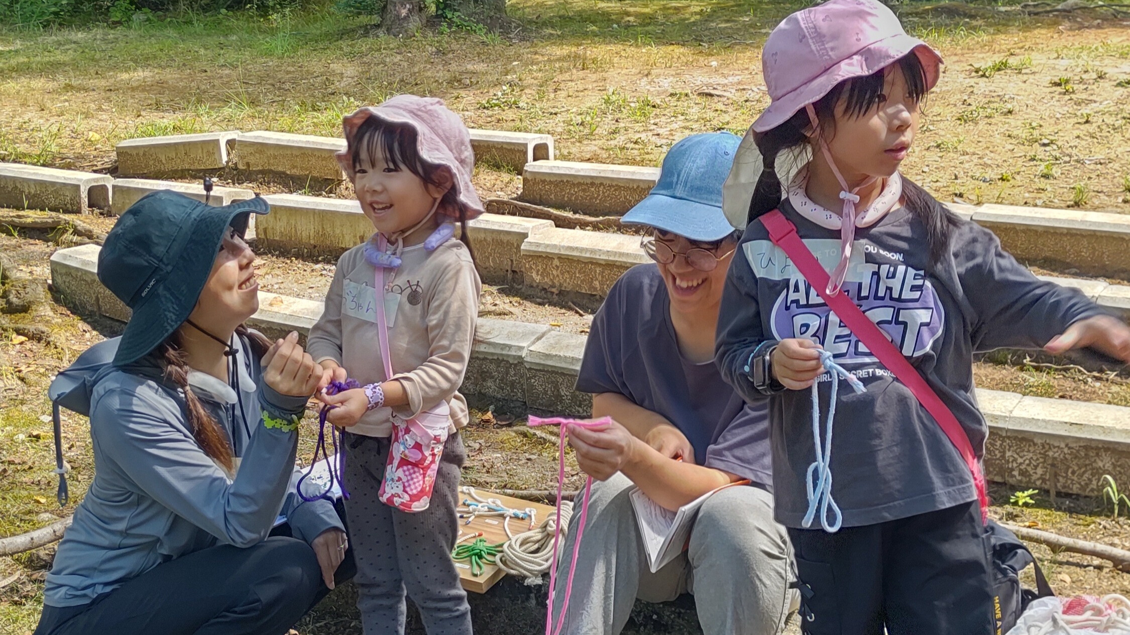 ロープワークをしたり、提示された色んなはっぱを探したり。