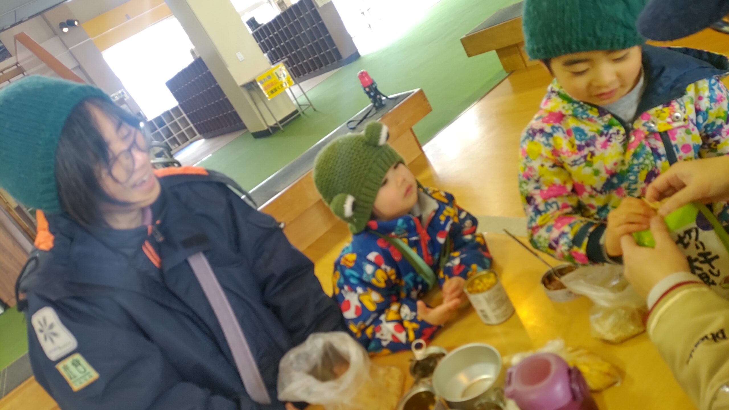 お昼ご飯は災害時でも役立つパック調理(ポリ袋調理)。